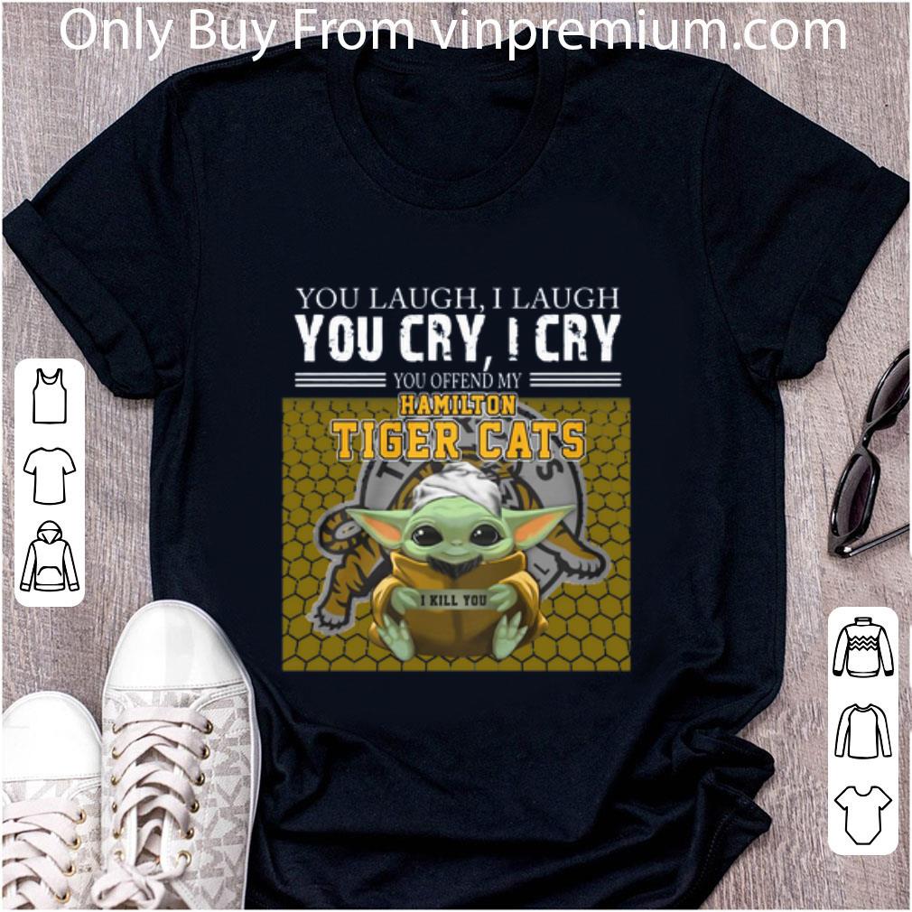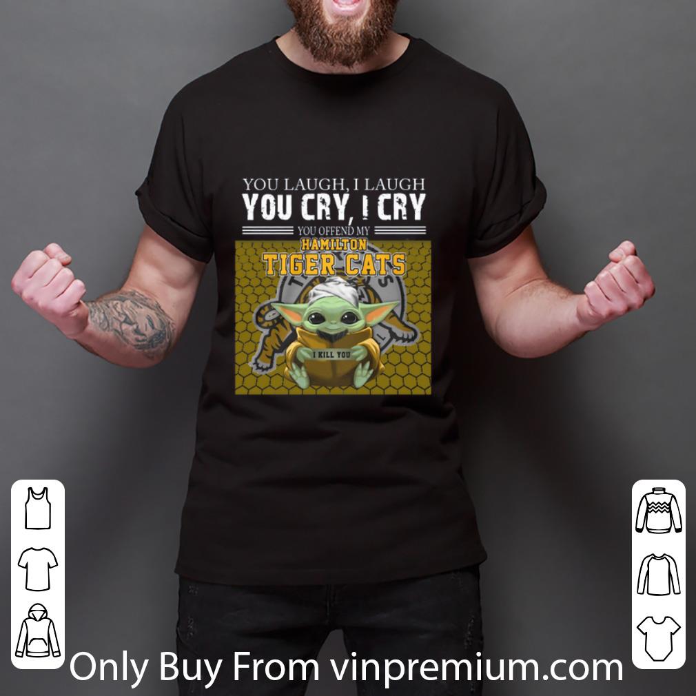 Pretty Baby Yoda you laugh I laugh you cry I cry you offend my Hamilton Tigers Cats I kill you shirt, Hoodie, Sweater, Longsleeve T-Shirt For Men and Women